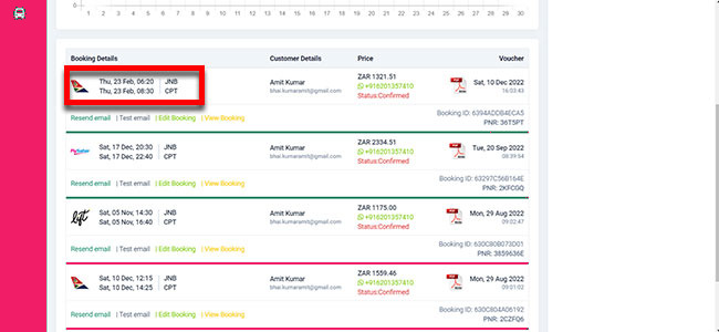 Cancel and Amend bookings - B2C White Label Travel Portal