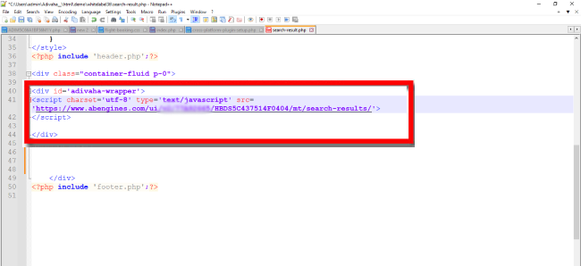 5. Paste the copied Short Code "into your home page "Search box" area and upload it to server."