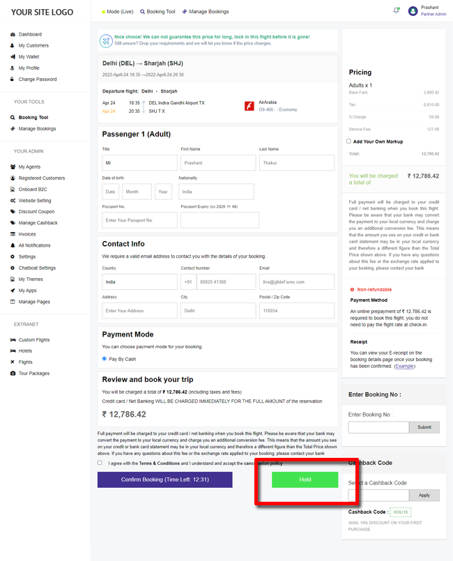 Home » Documentations » B2C White Label Travel Portal » Hold Bookings