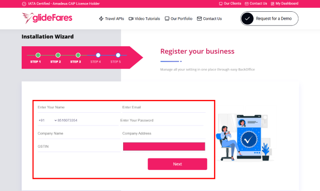 2. If pointed correctly, you will now be taken to the Business Registration page. You can fillin your company information and hit "Next"