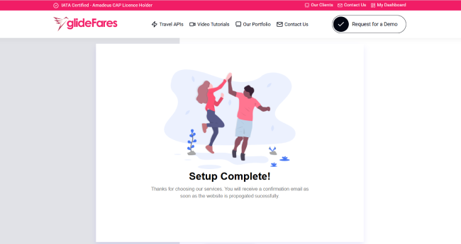 3. You will now land to the confirmation page with the links to your B2B Travel Portal and the backoffice. Generally, it takes few minutes to get the site published, but at times it may take 24-48 hrs. You should receive an email with the login info.