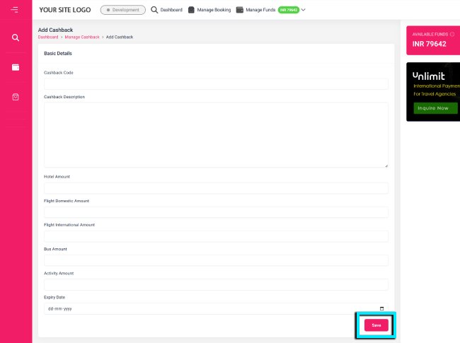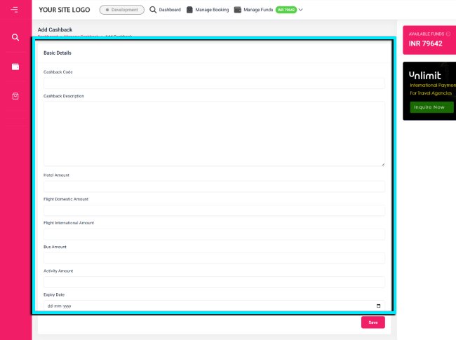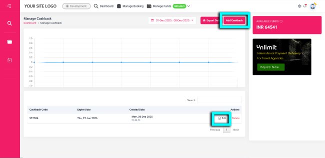 Manage Cashback - B2C White Label Travel Portal