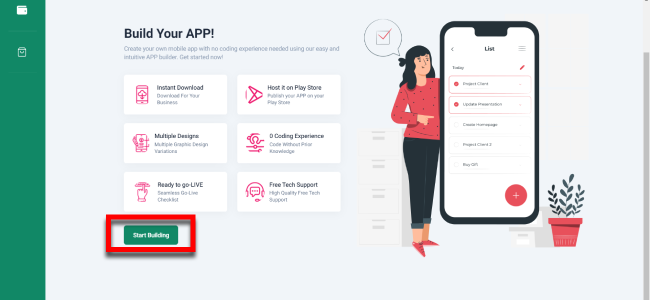 4. Click Start Building button