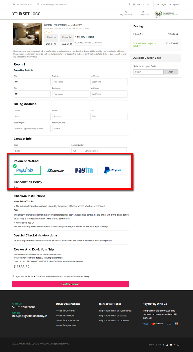 Activate Payment gateway - B2C White Label Travel Portal