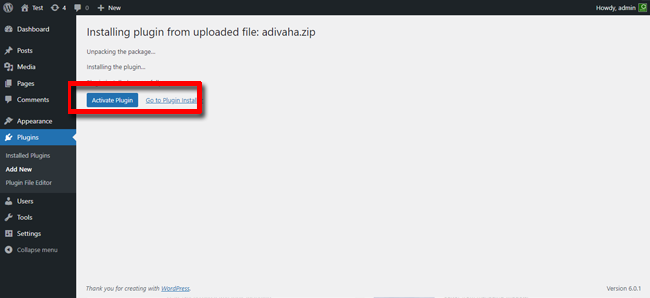 2. Click "Upload Plugin" -> upload "glideFares" plugin.