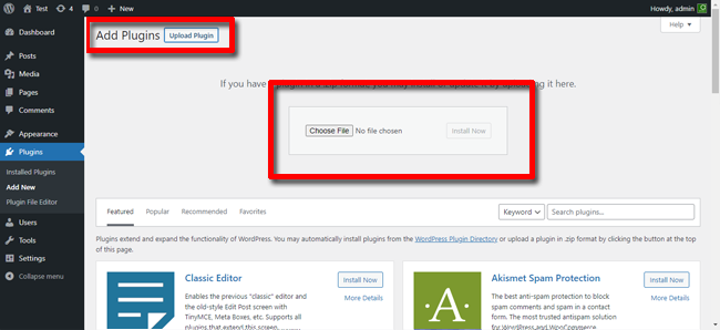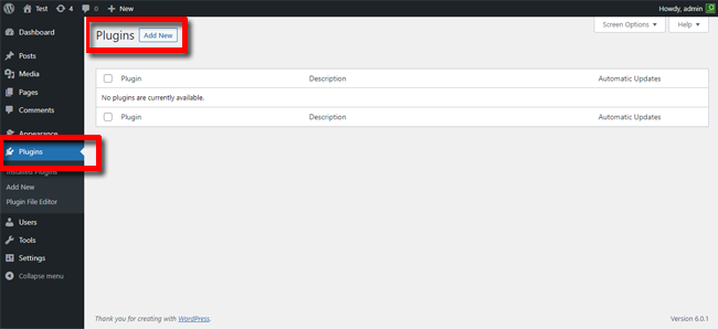 1. Login to your WordPress admin. Navigate to "Plugins" -> "Add New"